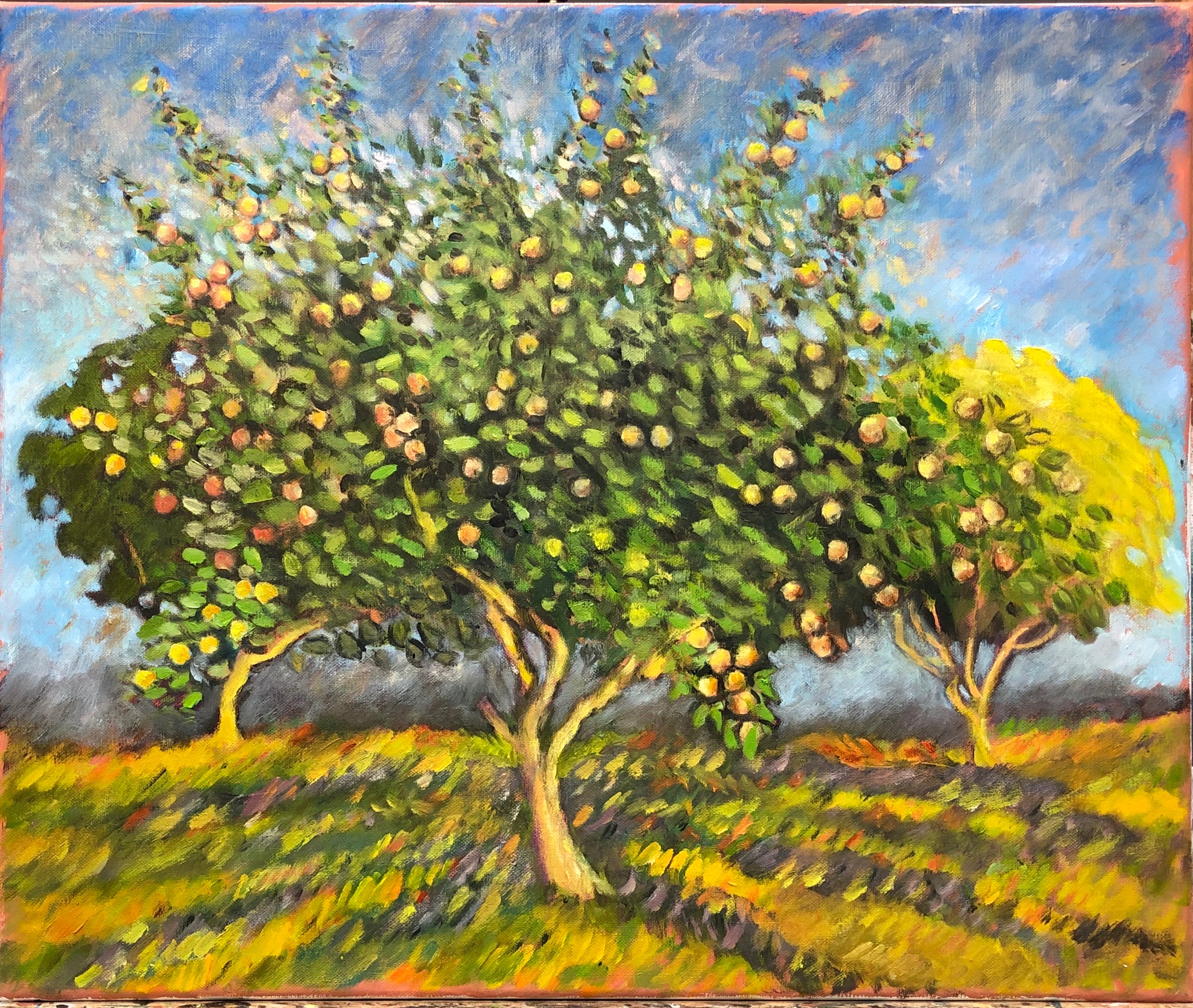 Date août 2019 identifiant 347 Dimension 55x46 Inspiration Cette fin d'été j'ai fait une série d'arbres fruitiers avec leurs fruits.
