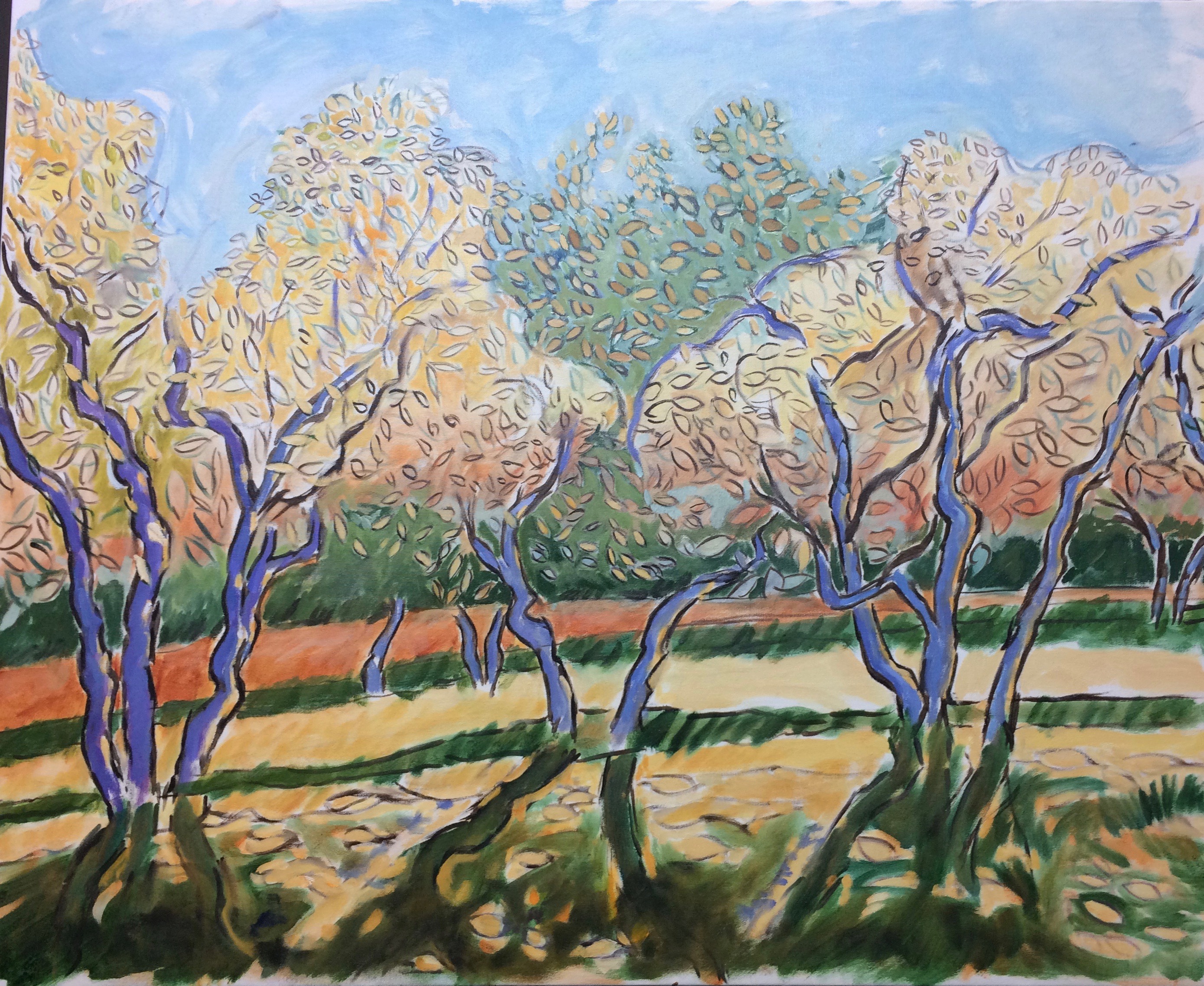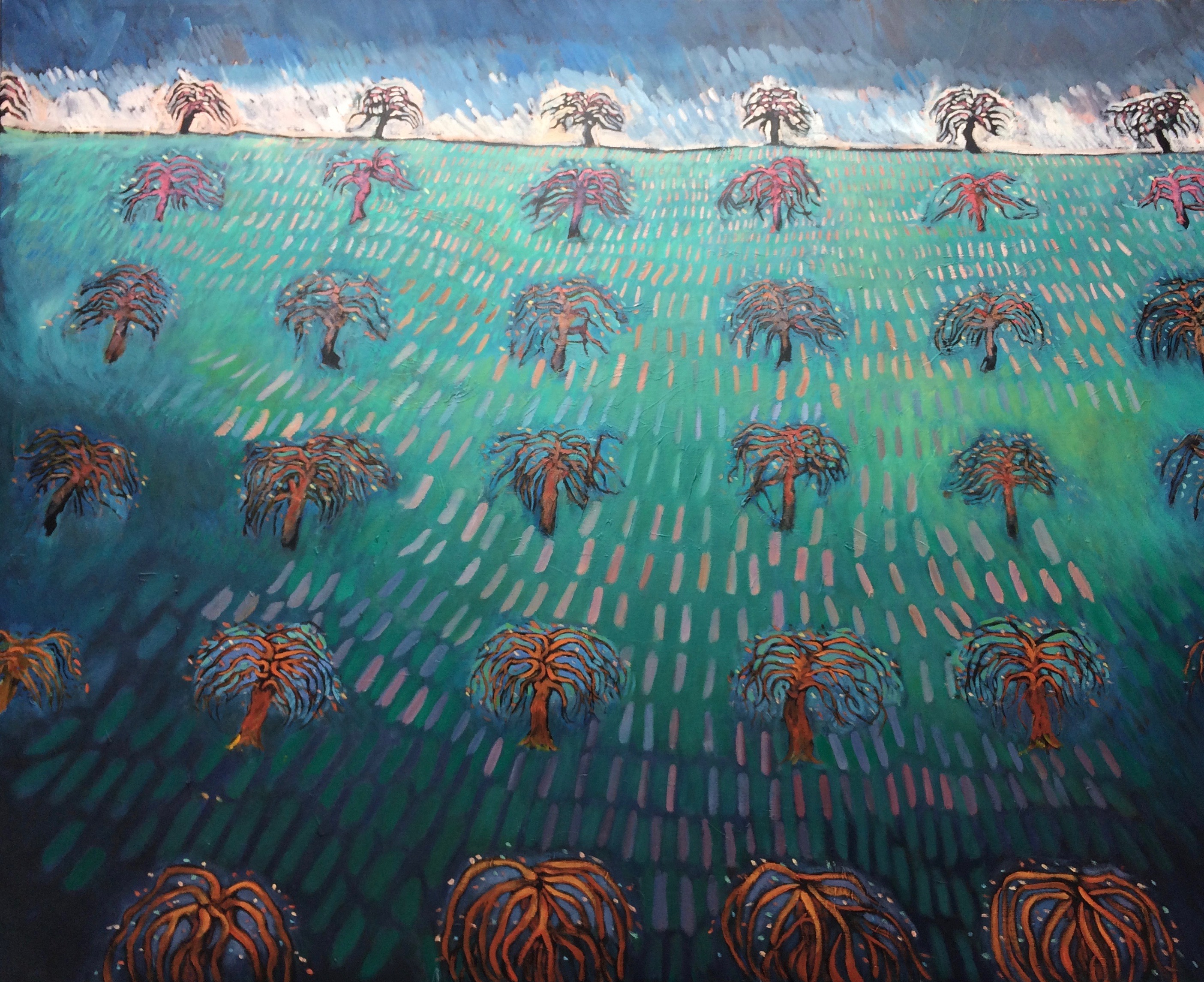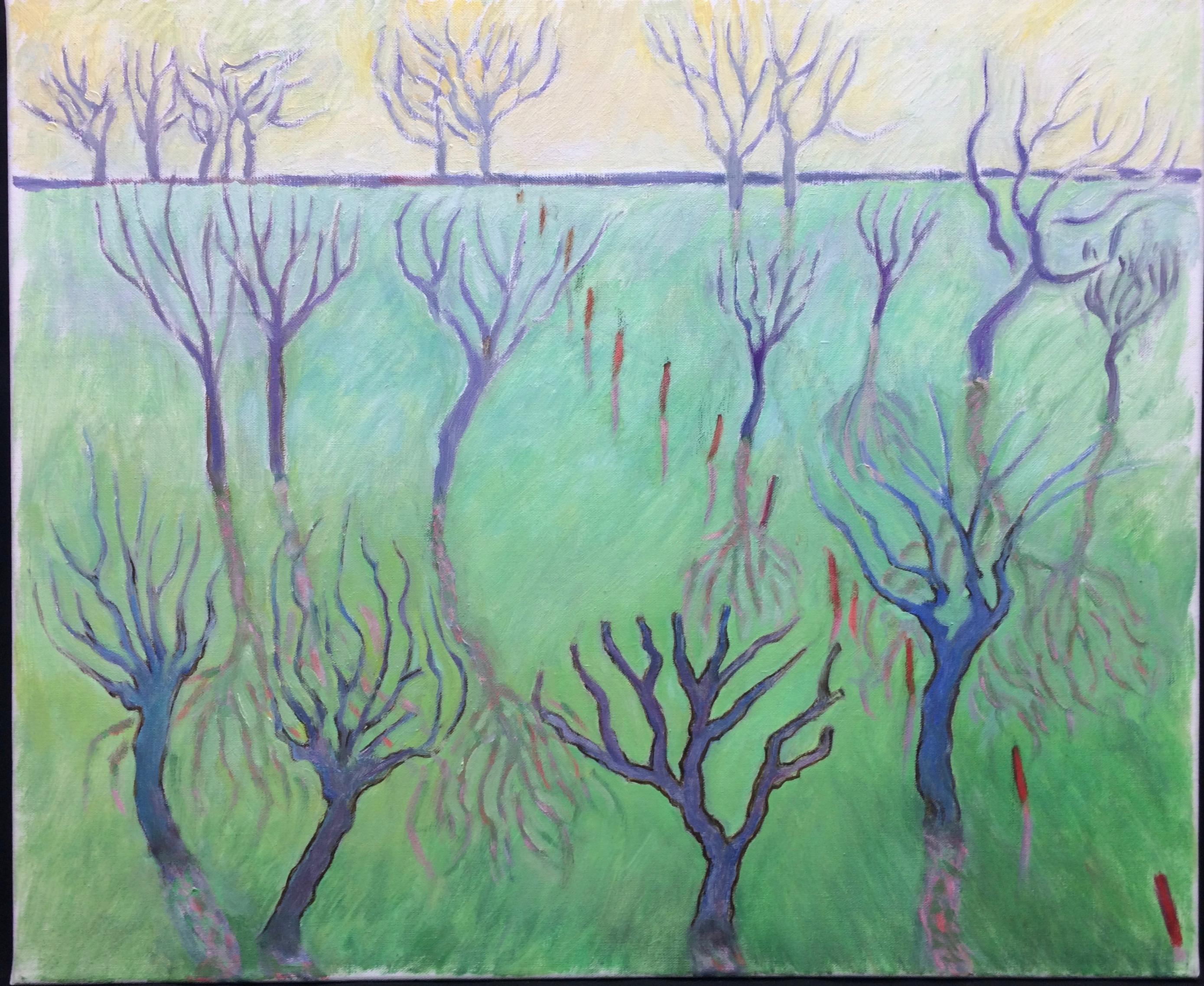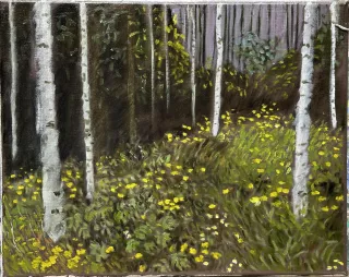 Troncs de bouleaux et renoncules, Parc Minier