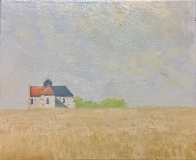 Ma première huile sur toile. Date juillet 1995 identifiant 5 Dimension 46x38 Inspiration J'avais fait sur place une aquarelle de ce sujet "inespéré", je m'en suis souvenu pour en faire une huile.