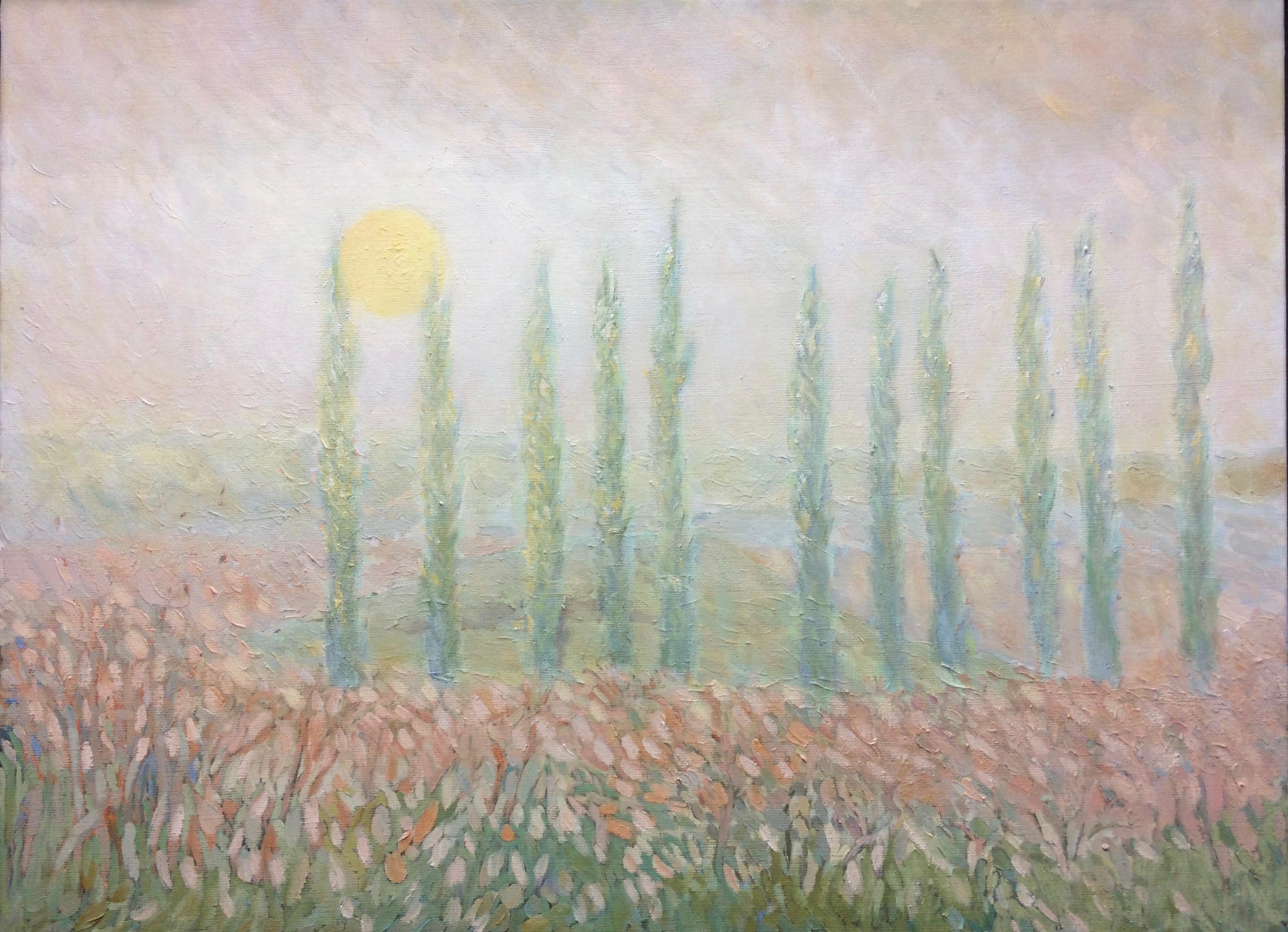 Peupliers dans paysage rose