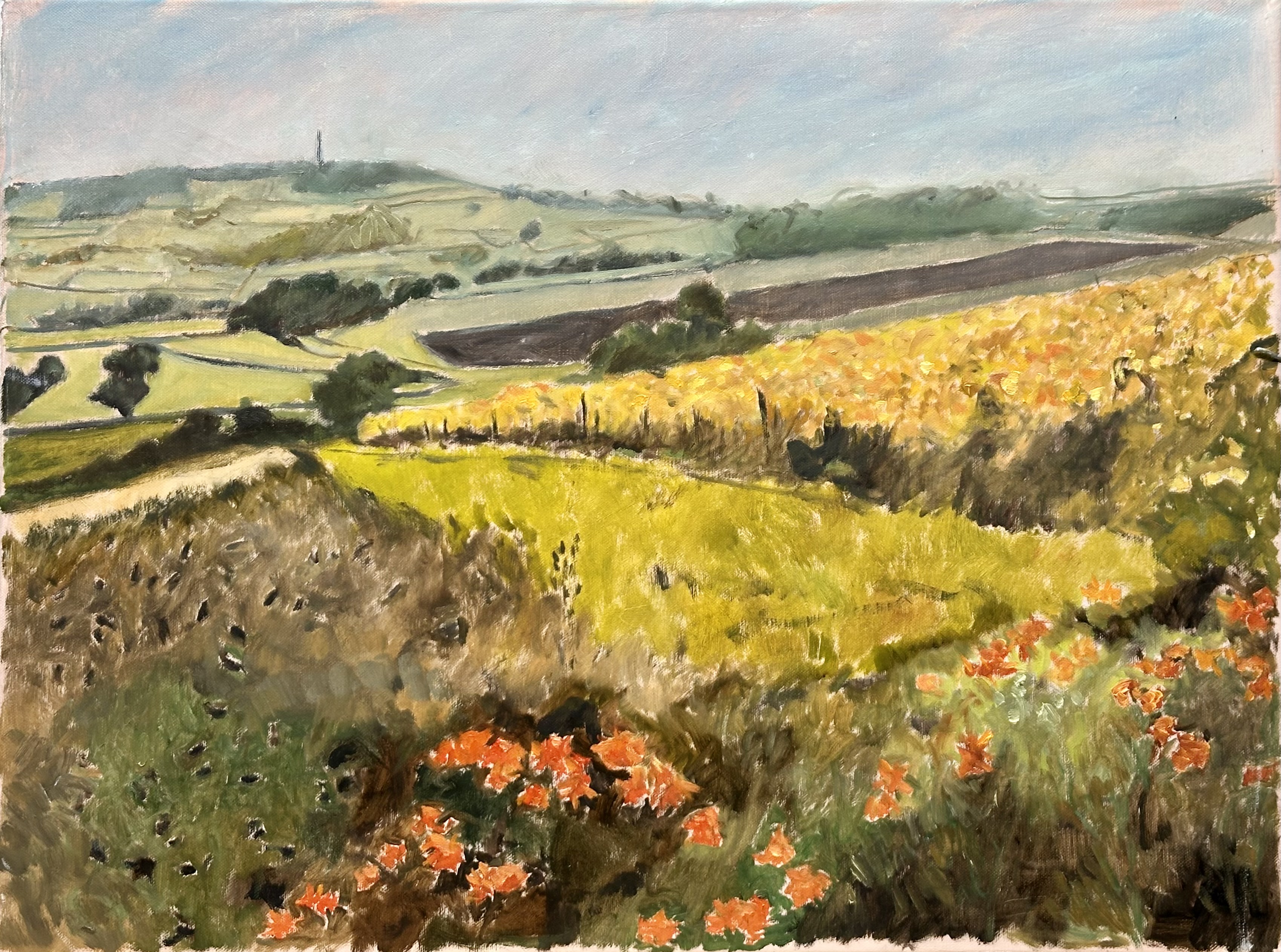 Fleurs rouges et vignes sous le mont Bouzu - Bissy-sur-Fley 71
