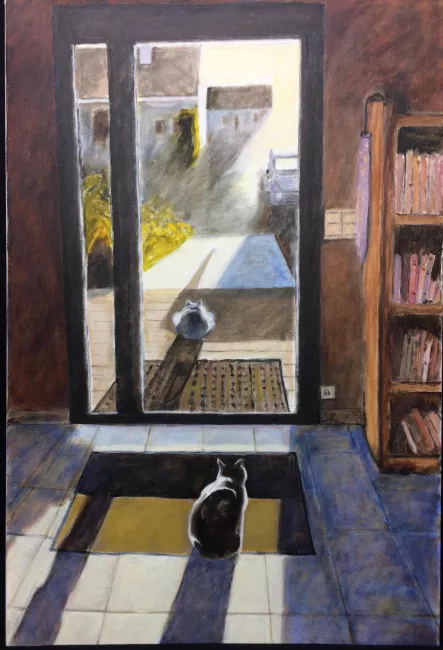 Mes chats un matin d'hiver : l'un inside, l'autre out.