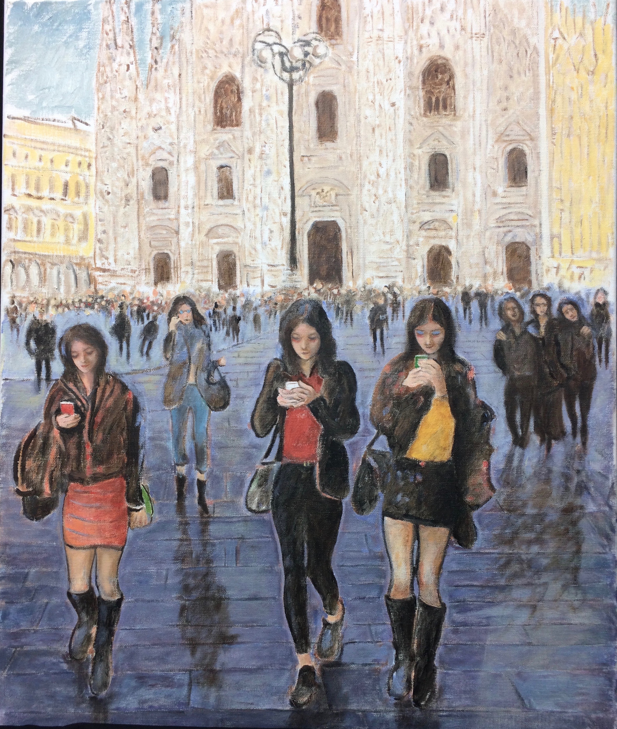 Le titre se veut humoristique car le sujet n'est pas la cathédrale mais la triplette qui les yeux rivés aux téléphones ne voit pas que j'ai sorti le mien.