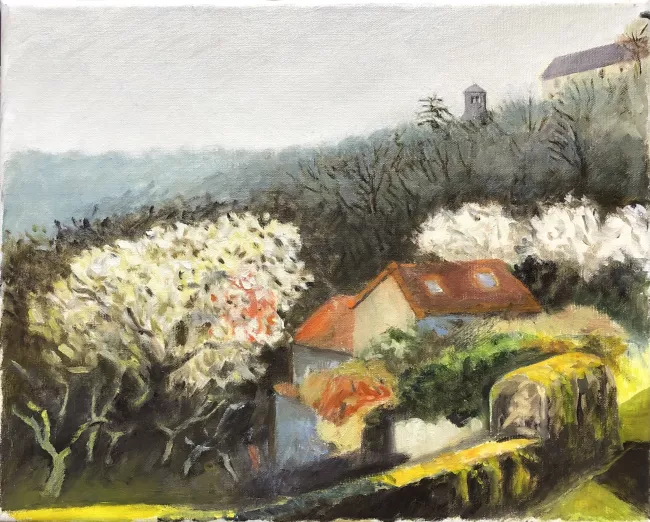 Petite toile en passant, pas sur le motif, mais à l'atelier avec musique.