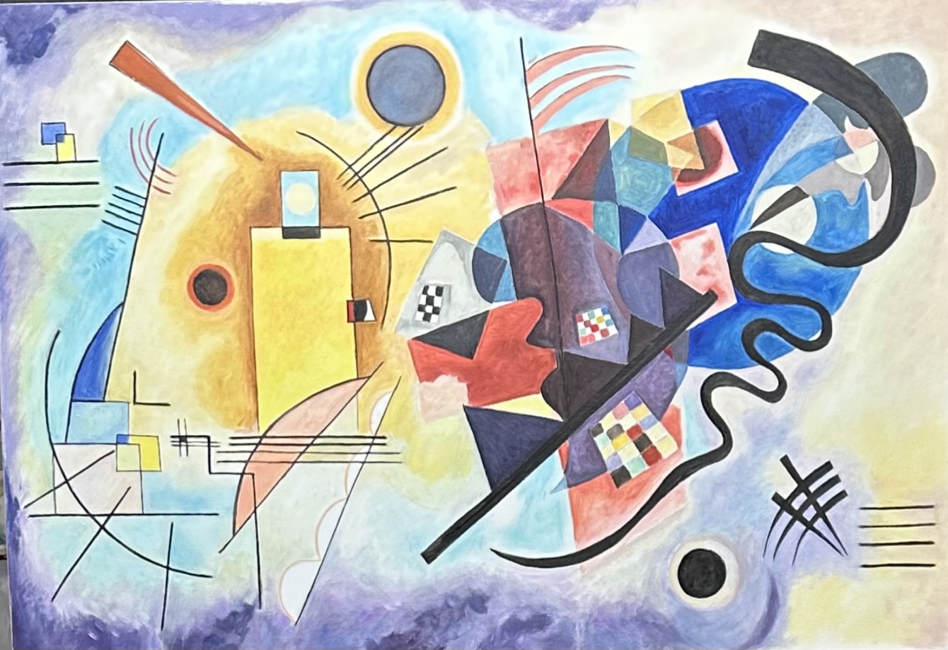 Copie pour mon cousin Roger. Il avait considéré qu'un "Kandinsky" dans sa salle à manger ferait un meilleur effet qu'un Popovitch ! Date mars 2024 identifiant 575 Dimension 120x80