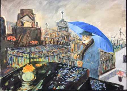 | Bernard Roudot dans un cimetière à la Toussaint |