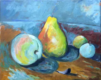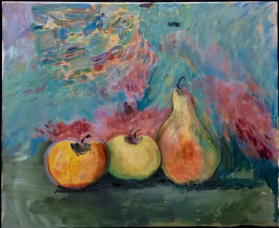 | Nature morte, 2 pommes et une poire |