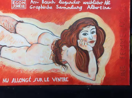 | D'après une aquarelle de SCHIELE, nu allongé sur le ventre |