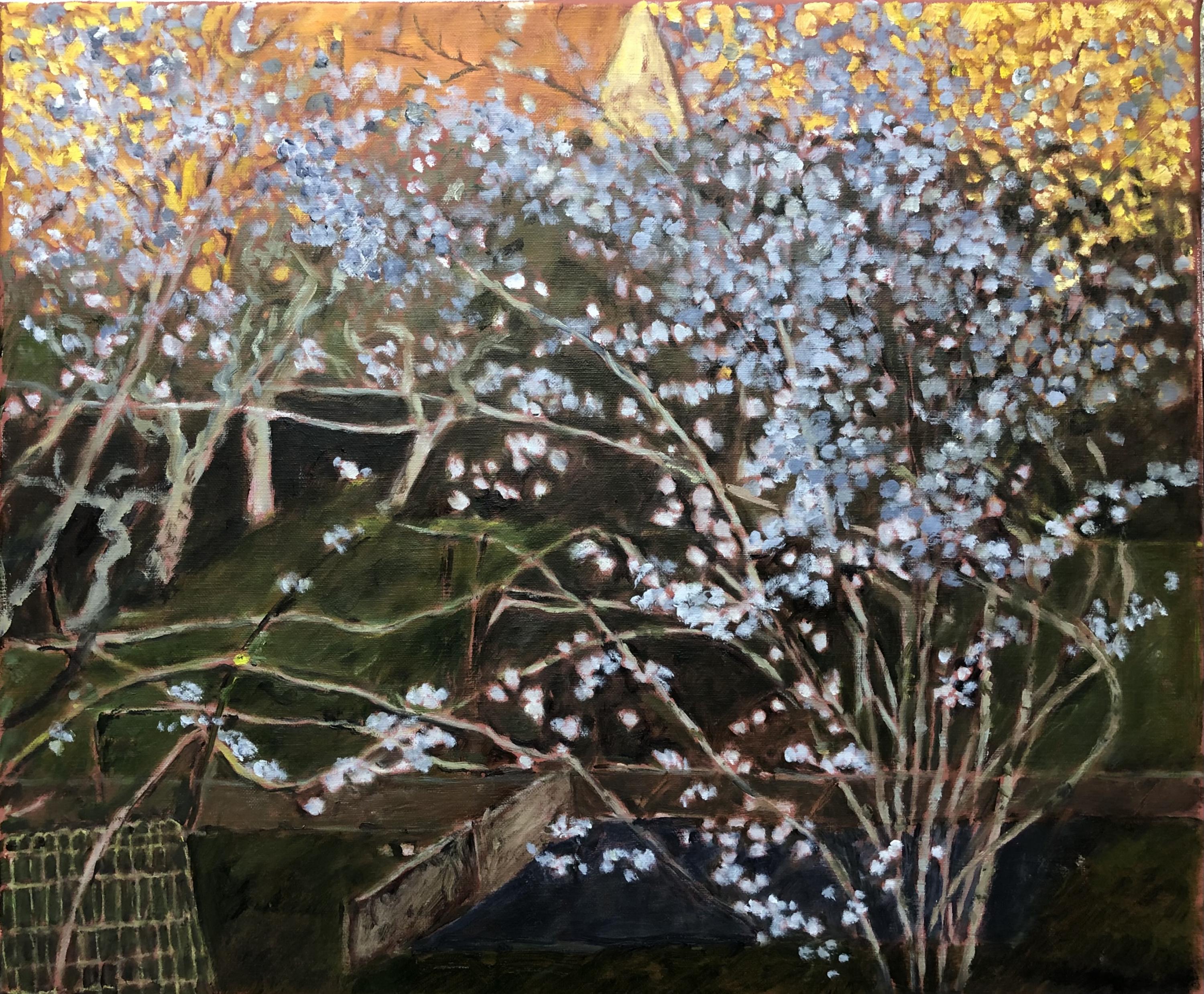 | Fleurs de cerisiers, dans l'ombre ou, au soleil du matin |